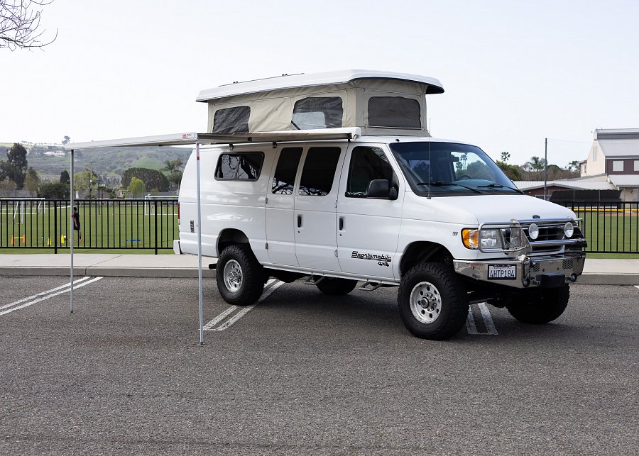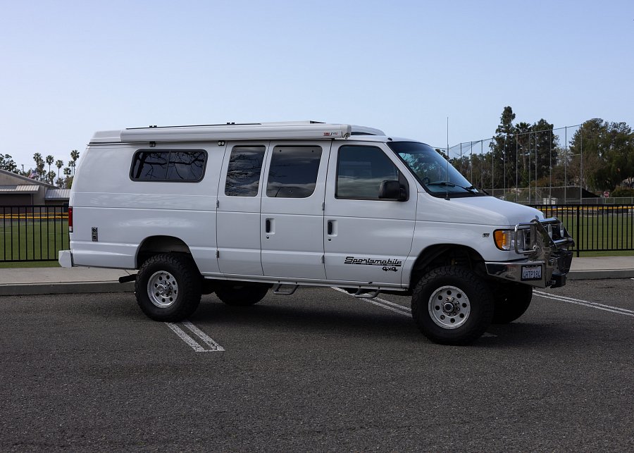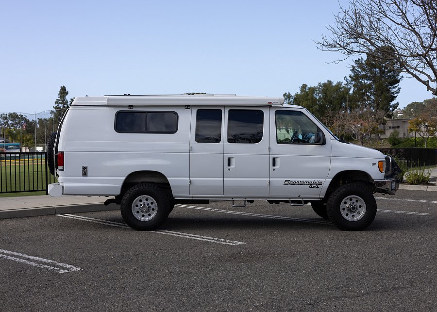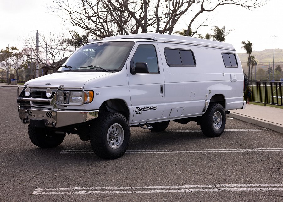 This 1999 Sportsmobile Ford E350 Econoline with a Quigley 4×4 conversion and pop-top is a well-kept, fully equipped camper designed for practical travel on a wide range of terrain. The van has been garage-stored, maintained consistently, and shows no signs of heavy off-road use. Its layout works well for a couple or adventure family, offering simple, functional comfort for longer trips.