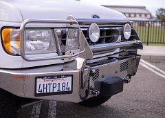 The exterior incredible well maintained clean white paint, American Racing wheels with BFGoodrich KO2 tires, and side steps for easy entry. A heavy-duty front bumper with winch and auxiliary lighting adds capability, while the rear bumper includes a spare tire mount. A side awning provides extra shade at camp, and an outdoor shower offers a convenient way to rinse off after a day outside.