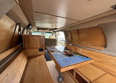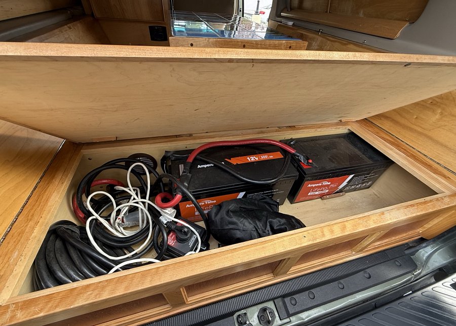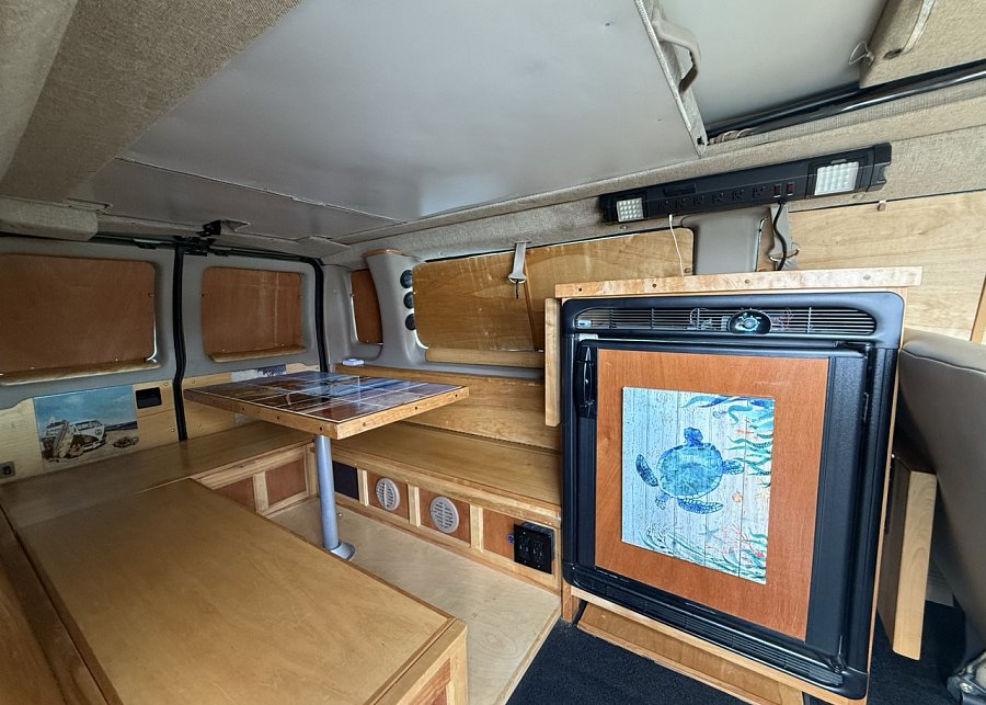 The impressive power system includes 400 amps of lithium batteries, a custom inverter, and an electric fridge, ensuring off-grid independence. Thoughtful details like custom window coverings, upgraded headlights and rear lights, fog lights, and ample storage make this camper van a perfect blend of style, functionality, and ready for your next adventure.