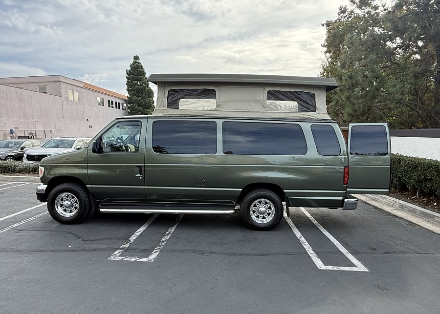 This 2002 Ford Econoline has traveled 134,597 miles and features a powerful 7.3-liter diesel engine, making it a reliable and capable adventure companion. Recently, it received a fresh green paint job valued at $15,000, giving it a vibrant new look.